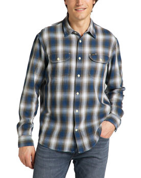 LEE WORKER SHIRT MĘSKA KOSZULA W KRATĘ DŁUGI RĘKAW INDIGO L68HOKDK 112145424