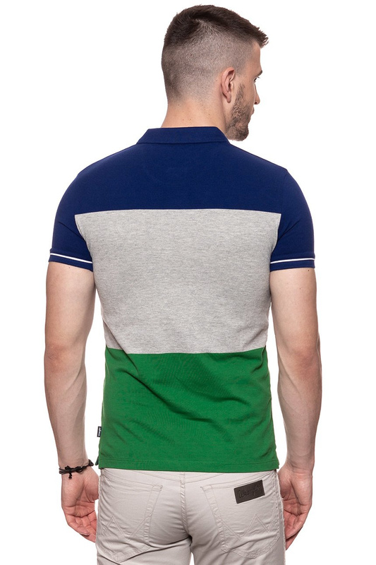 Męska koszulka polo w bardzo modnych w tym sezonie odcieniach zieleni, granatu oraz szarości.. Charakteryzuje ją regularny krój, zapięcie na guziki.