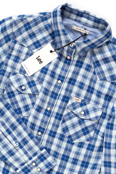 Koszula damska bawełniana w niebiesko-białą kratę. Charakteryzuje ją dopasowany krój oraz zapięcie na napy. Na piersiach dwie kieszonki zapinane na zatrzaski.
