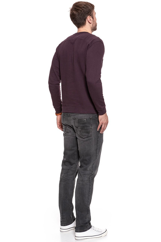 Męska bluza w bordowo-fioletowym odcieniu. Okrągły dekolt, regularny krój. Ściągacze u dołu oraz przy rękawach. Na klatce piersiowej wyszywany napis oraz logo producenta.