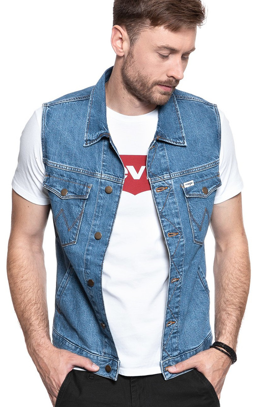 MĘSKI BEZRĘKAWNIK JEANSOWY WRANGLER DENIM VEST BORA BLUE W447Q318F 112128889