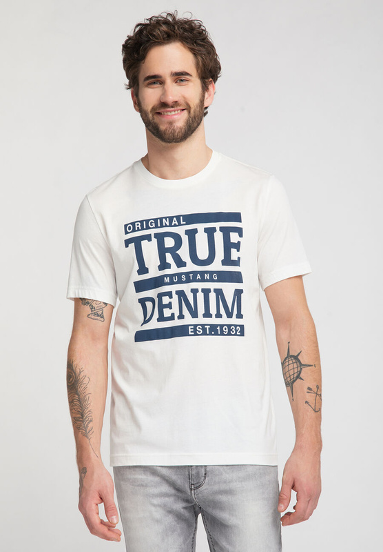 MUSTANG ALEX C PRINT MĘSKI T-SHIRT KOSZULKA Z KRÓTKIM RĘKAWEM LOGO NADRUK CLOUD DANCER 1007863 2020