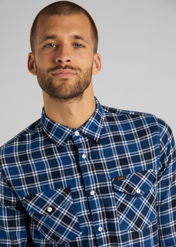 MĘSKA KOSZULA W KRATĘ LEE CLEAN WESTERN SHIRT WASHED BLUE L644RHLR 112115619