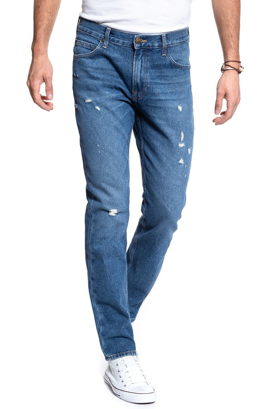 męskie spodnie jeansowe, dżinsowe, jeansy, dżinsy, dzinsowe, bawełniane, z bawełny, bawełna, slim, slim fit, zwężane, dopasowane, zwężane nogawki, średni stan, ze średnim stanem, regularny stan, zapinane na zamek, suwak