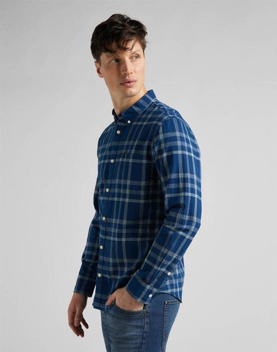 LEE BUTTON DOWN MĘSKA KOSZULA MATERIAŁOWA W KRATĘ MINT BLUE L880OEUD 112145645