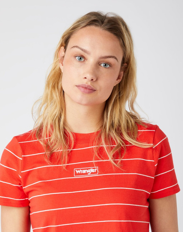 DAMSKI T-SHIRT WRANGLER SS STRIPE TEE POPPY RED W7ZCD3XJR 112141647