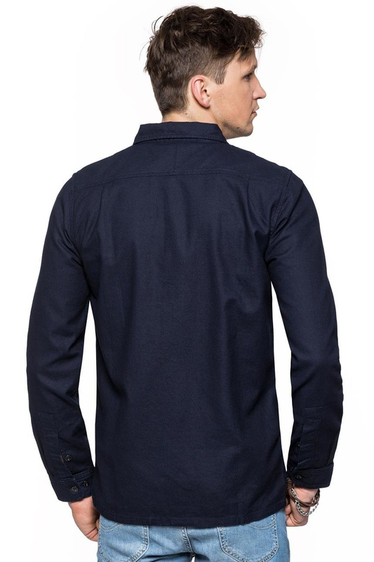 Klasyczna męska koszula w granatowym odcieniu. Luźny krój gwarantuje komfort. Zapinana na czarne, duże guziki. Na lewej kieszeni naszyta charakterystyczna metka z logo Lee.