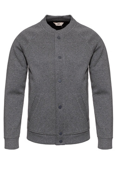 • Ciepła bluza typu bomber. Zapinana na zatrzaski typu napa. Bardzo modny, szary odcień. Idealna propozycja na wiosenne oraz letnie wieczory.
