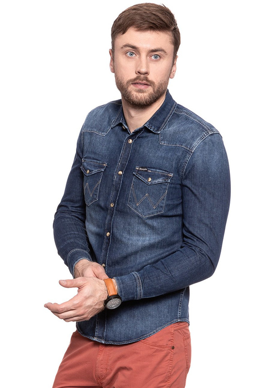 WRANGLER WESTERN DENIM SHIRT MID INDIGO W59837T8E