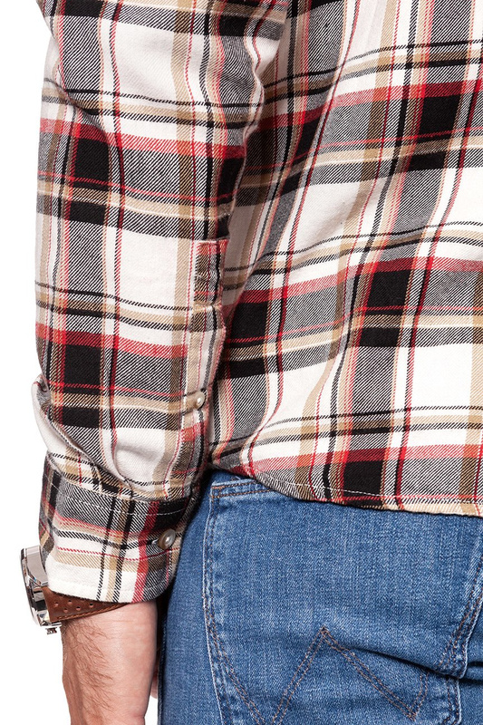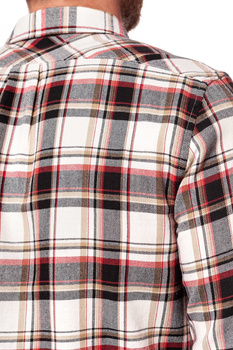 Męska koszula flanelowa w wielokolorową kratkę. Charakteryzuje ją regularny krój, zapięcie na guziki oraz dekolt w formie kołnierzyka. Na kieszonce charakterystyczna metka z logo producenta.